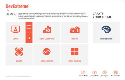 devextreme是一款专业的编程软件,适用于Visual Studio开发人员;软件可跨平台进行开发html5/jsp框架,可直接在Visual Studio集成开发环境,构建iOS,Android,Tizen和Windows Phone 8应用程序。DevExtreme包含 PhoneJS 和 ChartJS 两个原生UI组件,并且提供源代码。目前,DevExtreme支持VS2010/2012/2013集成开发环境,兼容Android 4+、iOS5+、Windows 8、Window Phone 8、Tizen五大移动平台。