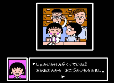 这是一款文字向的FC游戏,游戏玩法有些类似大富翁,缺点就是全日文,日语不好的同学可能会玩不下去,其他方面都还不错,里面共有4个角色,分别是小丸子,小玉,花轮和丸尾,当然里面丸尾依然是衣服欠揍的表情。