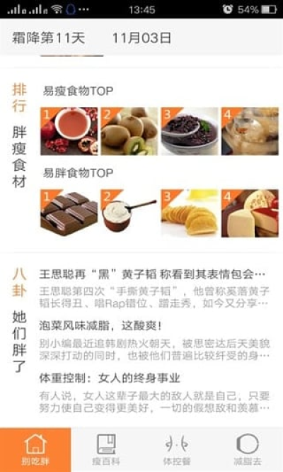 《吃货减肥》专为广大吃货减肥的APP。减肥很难,很少有人能坚持下来,我们精心计划了一个减肥计划。别吃胖的东西,找准胖与瘦的平衡点,以专业专注的姿态,给到用户全新全方位的体控指南。让肥肉不再是吃货的标签,让复杂的体控那些事儿变得更简单、更条理、更让人愉快。健康膳食体重管理专家,胖瘦平衡小能手!世人皆瘦你独胖?怪你没GET胖瘦平衡点!胖瘦天平靠“吃”来平衡?不信你就走着瞧!别吃胖,以五行体质与自然节气为依托,模拟真实生活场景,管顾膳食计划,首创餐前排毒,餐后去脂配合“疗法”,搭载别吃胖智能手环,实现软硬结合管控身材。通过对饮食、运动、睡眠、心态等生活要素的有效管理来控制体重不发胖,并用有趣生动的游戏元素,即时娱乐化的胖瘦谈资丰富落寞难熬的体控生活。