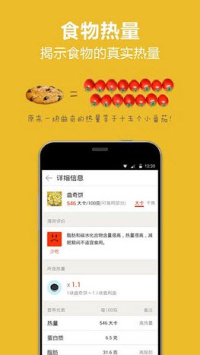 3.更多的重量单位热量数据,世界上没有两片一样的树叶,让食物热量更准确一些。