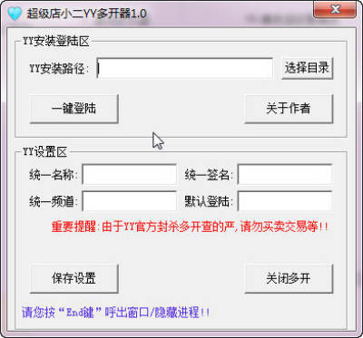 超级店小二YY多开器是一款简单的YY批量登录工具,适用于多帐号挂机和YY平台营销推广,需要的朋友可以下载体验一下。