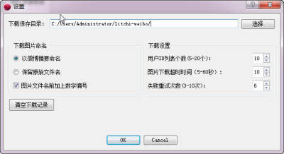 点击功能设置,设置图片保存目录、图片名称、下载超时时间、重试次数等等设置