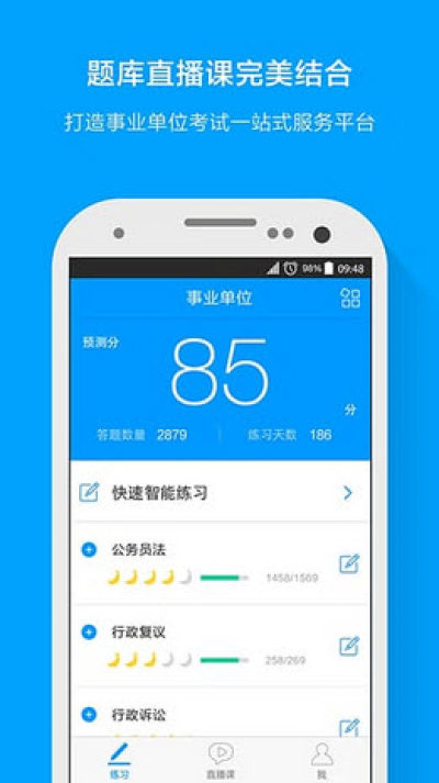 提供近5年各省事业单位真题模考、专项练习和利用人工智能算法实现的一对一智能出题,得到详细的个人能力评估报告,还提供事业单位考试的相关直播课,让您在短时间内掌握重要考点。