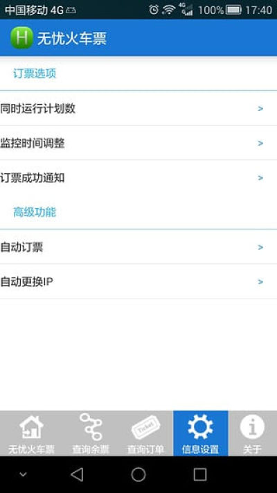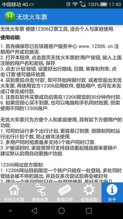 2.打开本程序, 进入信息设置, 输入上面注册的用户名和密码, 填入乘客信息以及列车信息, 保存。