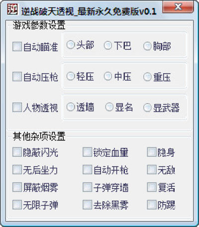 逆战破天透视是一款绿色免费的逆战游戏辅助,主要为玩家提供了自动瞄准、透视、无敌、防踢等实用功能,需要的朋友可以来下载使用。