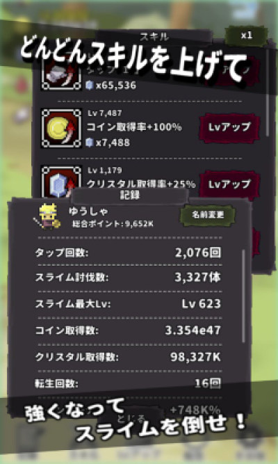 4.当然,随着时间的推移,史莱姆会越来越强,这时便需要勇者转生,接着挑战了。