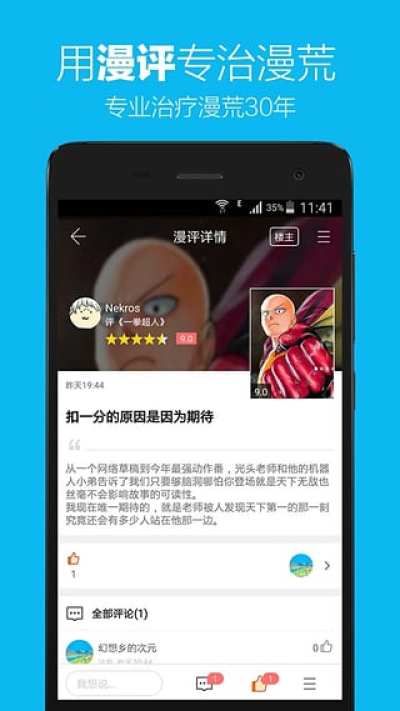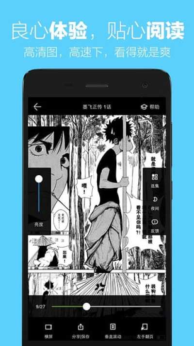 【读漫画】超清晰漫画图片、页面智能切割、滑动翻页和点击翻页、阅读进度自动记录、阅读横竖屏切换、智能预加载、贴心的亮度调节;