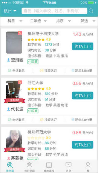 清华、北大、复旦、交大、浙大....家有学霸汇集全国200多所顶级名校上门辅导团队,让家长花更少的钱,给孩子找一个状元级的"伴读书童"。从此以后,孩子的作业天天高分、难题统统搞定,预习复习再无烦恼,考试成绩节节攀升。