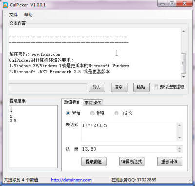 CalPicker数据提取计算器是一款简单的数据提取和计算工具,只需要复制或者导入文本,就可以快速识别和提取数值或制定文字字符,且支持替换和计算操作,需要的朋友快下载试试吧!