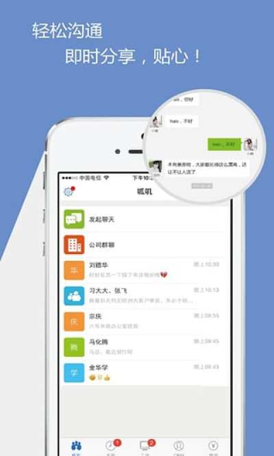 借助云平台和移动互联网技术,把人员管理、工作任务安排、客户管理进行整合,采用类微信的社交互动形式,主要解决老板及管理者在过程管理中的执行监督难题。