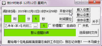 支持倒计时提醒、设置可载入可保存、提示时自动弹出、自选提醒铃声等功能