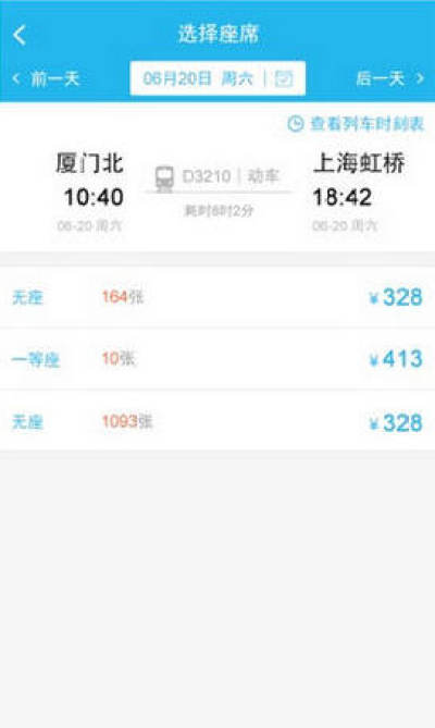 高铁旅行app实时同步12306官网火车票数据,支持车票预订(火车票、动车票、高铁票、学生票、儿童票和军残票查询预订)。