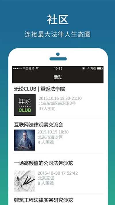 3、增加无讼活动“围观”功能,身临其境感受线下活动现场,及时获取新鲜资讯;