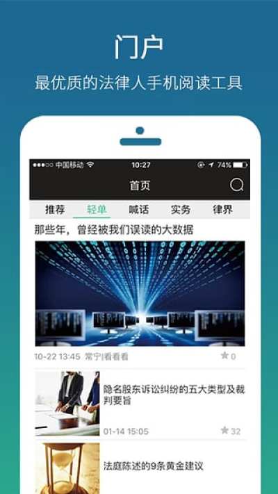 无讼阅读APP是一个移动端上最优质的法律人手机阅读工具。适合法学专业的同学和法律界人士使用,它的初衷是”让法律人连接起来”,大家可以在上面获得最新的新闻和干货分享,并且可以同同行交流,了解行业最新资讯,参加无讼阅读的线下沙龙活动也是一个很好的选择。