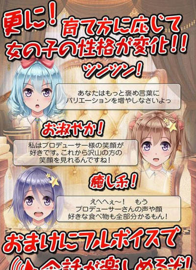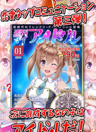《周刊偶像》是一款育成妹纸(机器人)的点击恋爱模拟游戏的第3弹,之前的第1弹为《周刊娃娃》,第2弹为《周刊女仆》,玩法也是一样的,只需要点击就可以。偶像是由七海配音的,全篇都是以动画的形式表现。