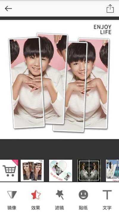 这里有美化,裁剪,拼图,镜像,形状等多种图片处理方式,您只需要动动手指,就可以将你的图片一秒变大片!