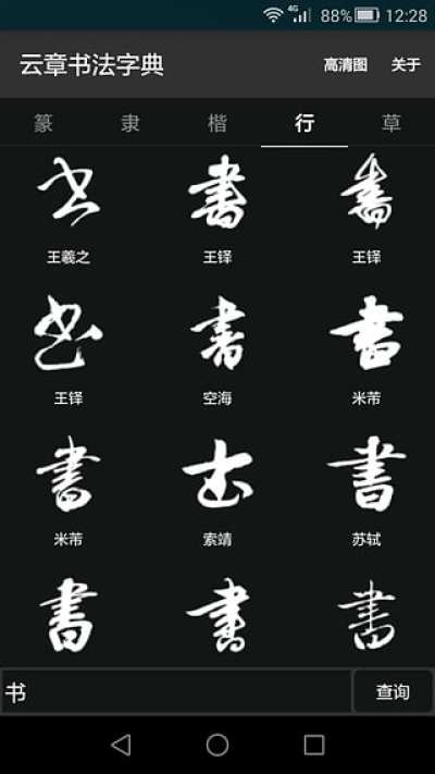 云章书法字典APP是一款现代书法初学者和爱好者必备的书法学习工具之一,有了它就可以一键浏览各大名家的书法作品,以最快的速度提升自己的书法水平。
