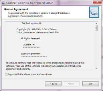 下载软件,解压压缩包,双击TVicPortInstall41.exe文件开始安装,进入下一步,仔细阅读以下许可协议,如无异议,点击同意即可