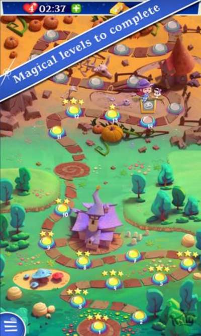 依旧是个颜色鲜艳、色调明快的世界。除了泡泡龙玩法,还加入了很多新的元素。女巫Stella和她的猫需要你的帮助,赶走那些扰乱她家园的黑暗精灵。巫术的加入也将会成为玩法中的一个亮点。