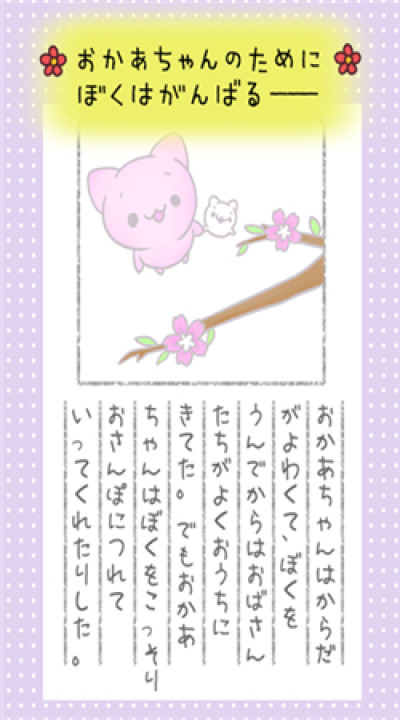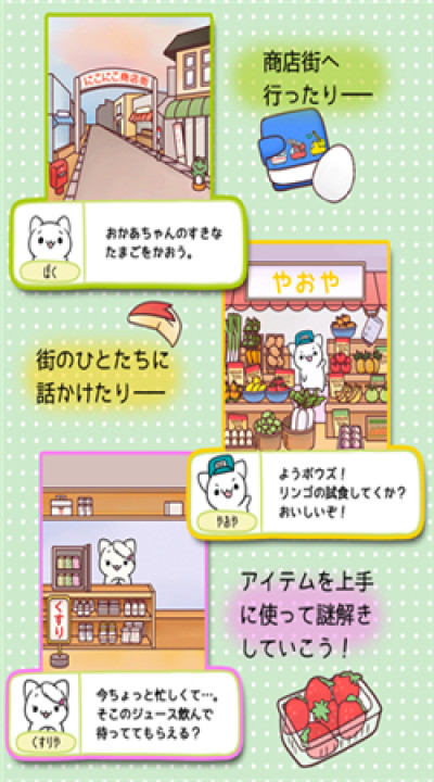 请听听我的请求是一款日系风格的休闲游戏。为了心中重要的人,我会努力的,为了我,生病的母亲一直没有住院而一直留在家中。稍微有精神点的时候,也会和我说说话。所以,我也会为了母亲而努力,一边完成关卡,一边推进剧情,就这样一直进行到我和母亲的结局吧。