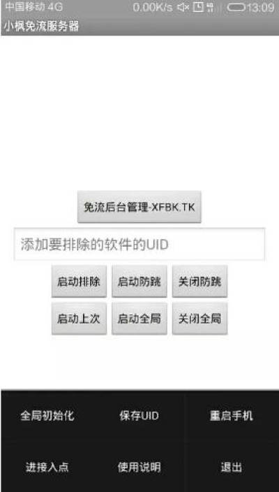 第二步,安装完小枫免流后初始化小枫免流工具(菜单键-全局初始化),,,然后重启手机打开再小枫免流服务器
