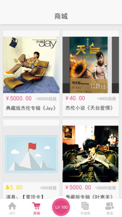 “杰迷”通过完成JayMe中的任务可以获得金币奖励,用于购买商城部分商品,并参与JayMe金币竞拍活动,获得杰伦精美周边商品。同时,当你在APP内升级,即可获得抽奖券,抽取奖池奖品,杰伦周边、签名照、CD甚至演唱会门票,所有市面上的稀缺资源,在这里你都可以通过“抽奖”免费获得。