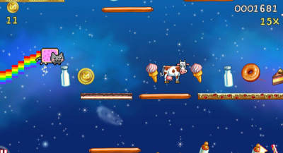 游戏中保持了Nyan Cat欢快有趣的形象和动作,玩的时候强烈建议带着耳机玩,可以加深洗脑度。