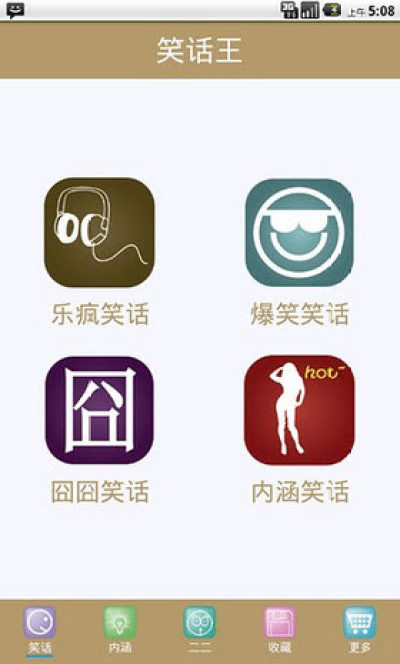 笑话大王收录了四大笑话板块,其中包括:乐疯笑话,爆笑笑话,囧囧笑话,内涵笑话,笑话大王,娱乐世界。
