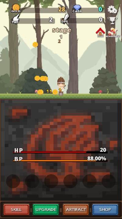 一款轻松简单的点击类放置游戏,玩家疯狂点击,小男孩就会一直挖掘下去,唔其实挺无聊的。