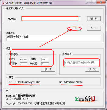 4、根据需要勾选“分割完成后打开对应目录”和“文件的首行为列名”;