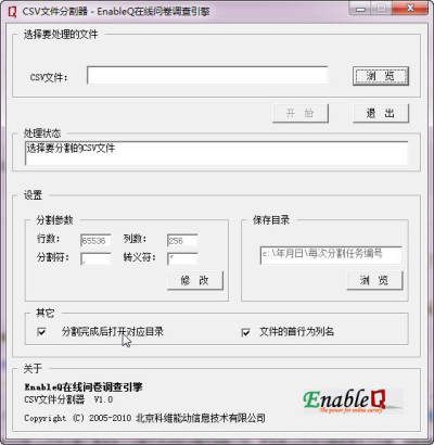 CSV文件分割器是是一款非常简单的CSV文件分割工具,软件从阿紫简单,导入文件,即可自定义分割行数、列数、分割符等快速将其分割成多个均等的文件,有需要的朋友可以下载体验一下。