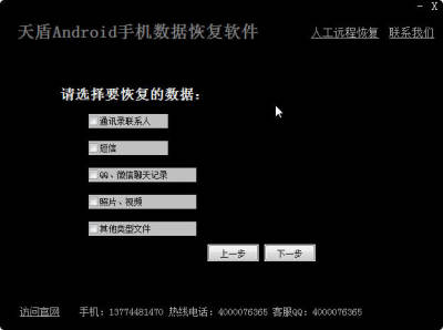 天盾安卓手机数据恢复软件是一款简单但是专业的手机数据恢复软件,天盾数据恢复恢复中心工程师提供高端的远程数据恢复服务;可以支持安卓、苹果及其他系统手机的数据恢复,包括通讯录、短信、QQ微信聊天记录、照片视频以及其他文件等,且操作简单;有了它,再也不担心误删资料造成的损失啦,需要的朋友可以下载体验一下。