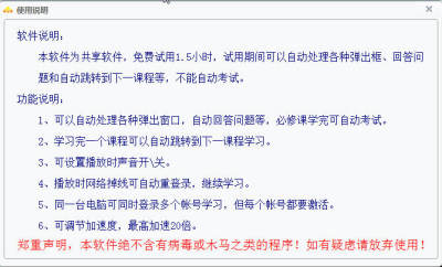 1、可以自动处理各种弹出窗口,自动回答问题等;必修课完成可自动考试。