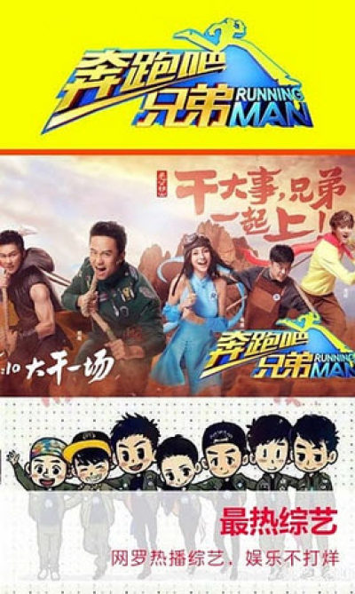 娱乐综艺:奔跑吧兄弟、快乐大本营、康熙来了、天天向上、全员加速中、笑傲江湖、爸爸去哪儿、原来是你、隐藏的歌手、一年级