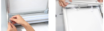 1:首先,将灯管放入灯箱上下盖衔接处进行固定,并连接上左侧插头,并安装金属固定卡槽;