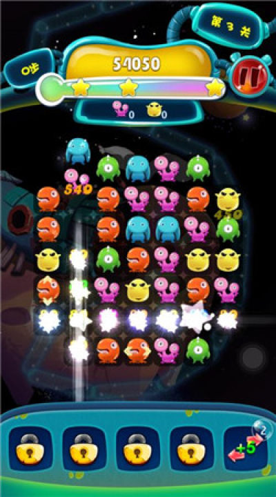 星际消消乐是一款大家都喜爱的益智休闲类三消游戏。游戏以星际探险为背景,搭配色彩丰富形象可爱的怪物元素,您一定能从中体验到消除游戏带来的不同寻常的乐趣。除了传统三消游戏模式以为,到指定关卡,还将开启全新模式——星际实验室。在该模式中,您可以通过每日挑战获得特殊道具,来永久订制属于自己的关卡,从中玩家可以一定能感受到一般三消游戏里感受不到的DIY乐趣。快来加入我们吧,惊喜不断等你来发现!