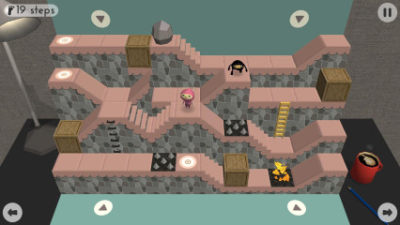 忍者迷宫PATANKO是一款清新的益智解谜游戏,通过空间的翻页来使两边路径产生变化来到达终点,难度在于记住通道的走向,基本就是乱翻一通。你可以通过翻页,移开障碍,让他从那里逃脱。