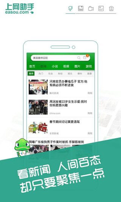上网助手是一个功能非常强大的手机上网辅助工具,它可以帮助你快速找到你想要的网址、新闻、图片和小说,有了它之后上网会变得简单很多,感兴趣的朋友快来看看吧!