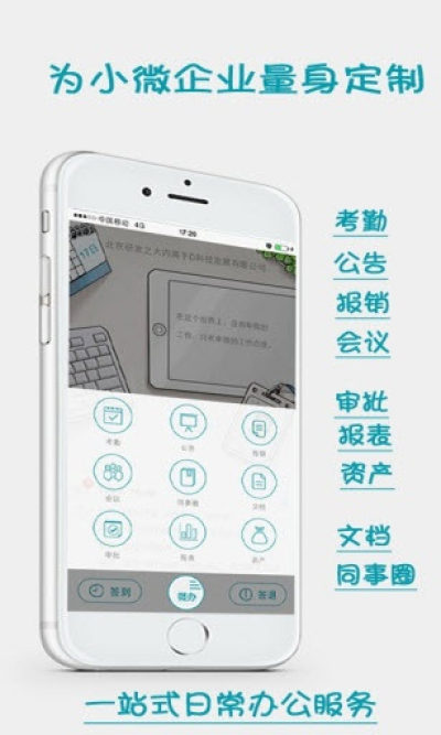 一站解决日常办公,企业管理的问题,不用培训、不用电脑、0设备投入!