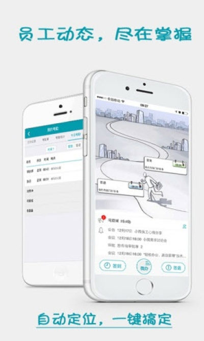2.移动考勤:自动定位签到、签退时间和地点,员工出勤尽在掌中。