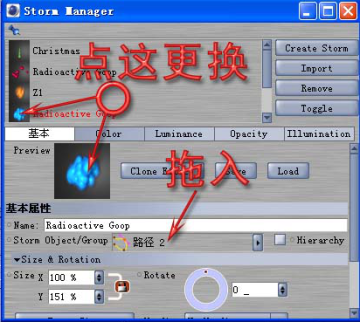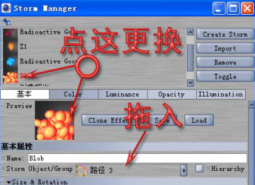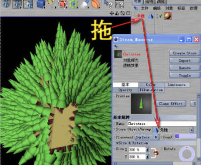 它可以按样条去布置粒子效果也可以在模型表面生成效果,放一个样条或模型,或给样条或模型做动画,应用上一个效果,在渲染的时侯就看到了效果。