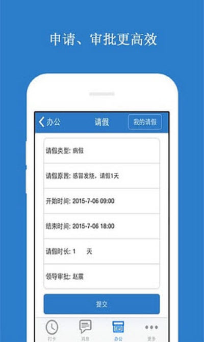 4.在线无纸化审批人员请假、费用报销、工作情况拍照反馈等,环保、节省办公费用;