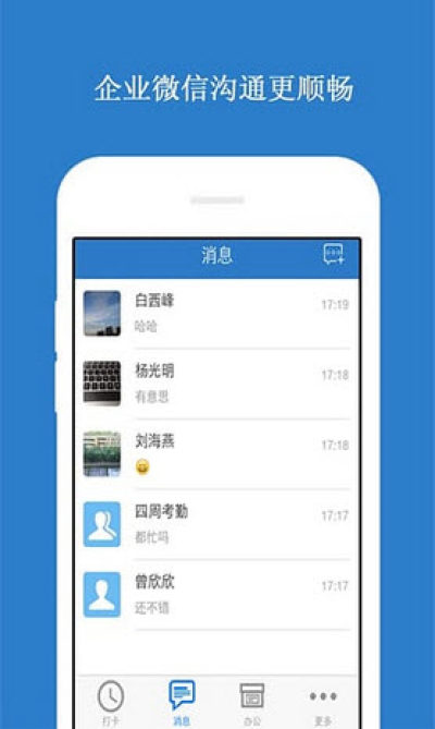 1.消息沟通:无需添加好友,企业员工之间像企业微信一样随时进行沟通。