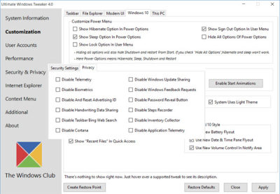 Ultimate Windows Tweaker 4.0,支持最新的win10系统,非常好用的系统优化工具,包含了超过130项的优化,可以快速优化你的win10系统!