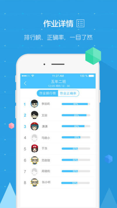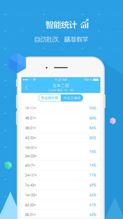 6、即时排行:随时查看自己的班级排名、学校排名、全国排名;