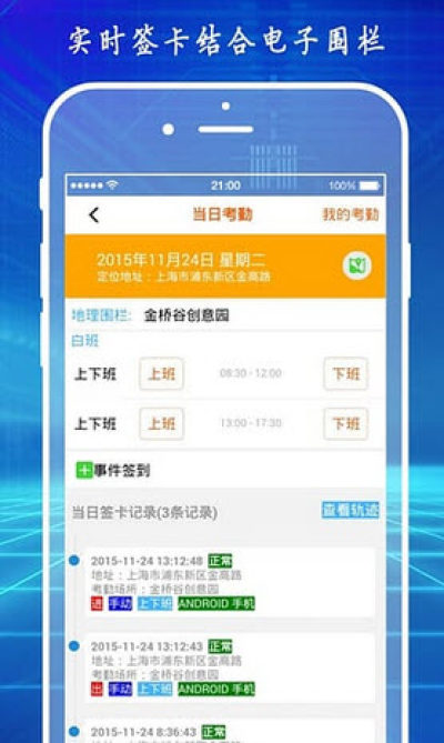 1.定位考勤签到功能,新增了电子围栏可实现更好管控人员出勤问题;