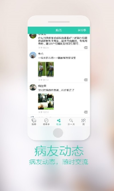 “病友动态”——在病友间分享就医心得,转发医疗资讯,原创诊疗日记。