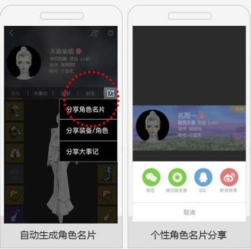 1、游戏角色&装备,随时查看分享