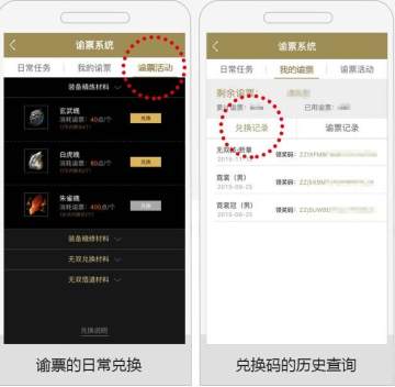 增加兑换码查看,谕票日常兑换。谕票系统