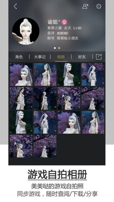 2、游戏自拍相片,同步更新个人相册